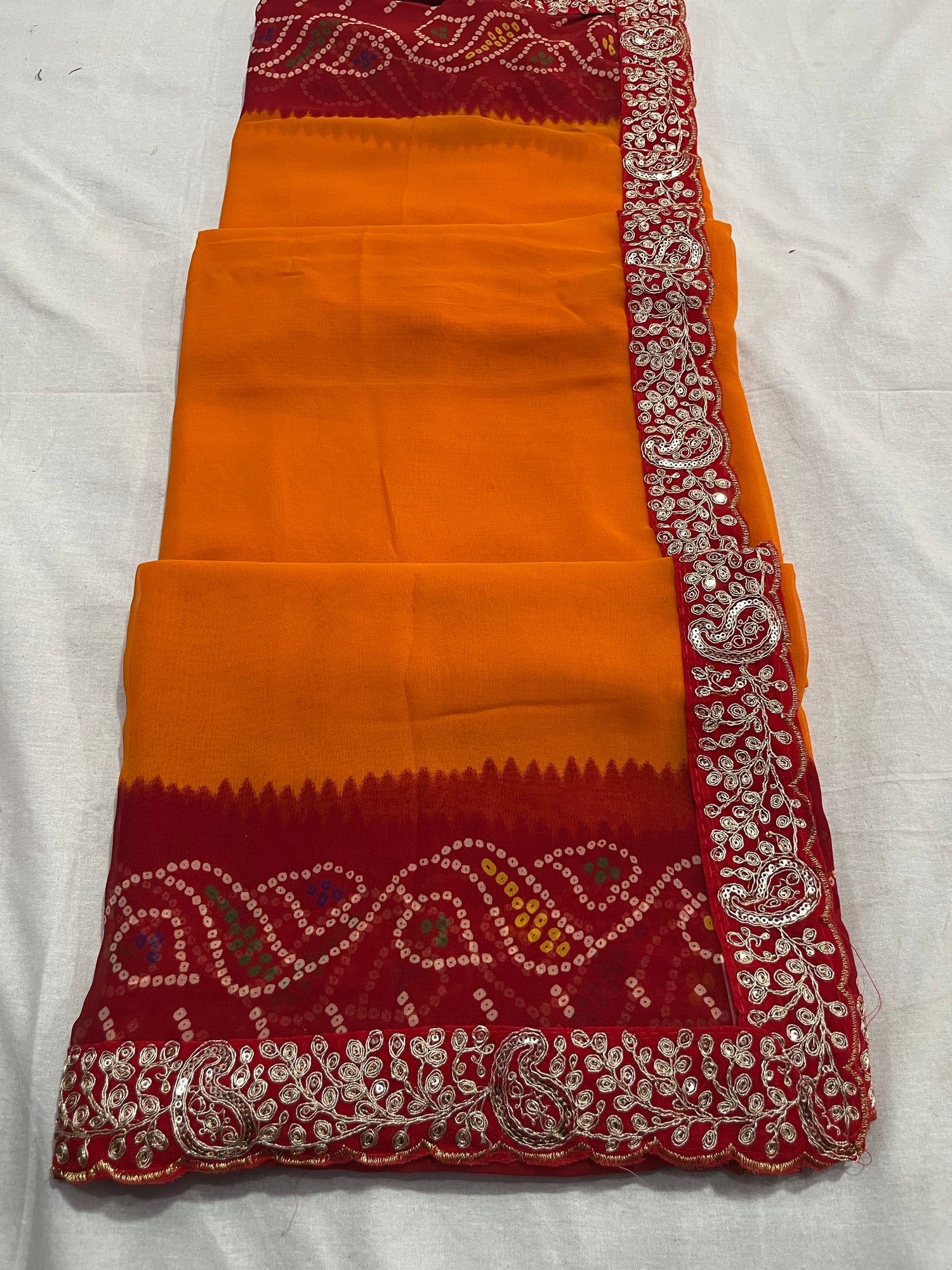 Beautiful red sibori bandej saree